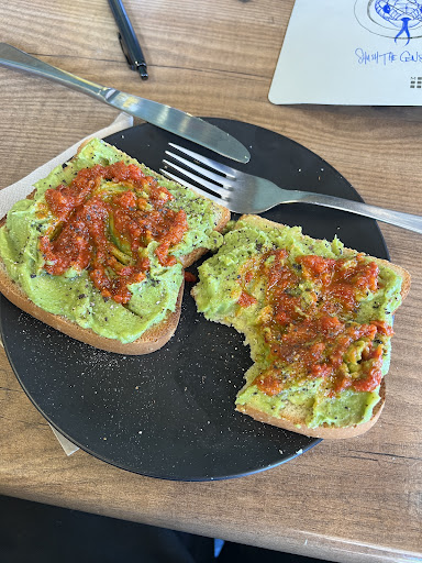 Our coffee arrived after half an hour, and our food after an hour. The coffee would have been ok if it wasnât lukewarm. The food was overpriced: cheap bread, tasteless scrambles and avocado.