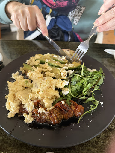 The inner child in me couldn't resist ordering the Toy Soldiers, a nostalgic classic that seems like a thing of the past – but not here. It did not disappoint, with perfectly gooey eggs and toasted soldiers that brought back all the right memories. My partner, always up for a big breakfast, went for the Taste of Tasmania, and according to him, it's one of the best he's ever had. The caramelized mushrooms and tangy relish were standout accompaniments, while the cheesy potato balls were a delightful addition. The portion sizes were spot on – just enough to leave you feeling satisfied without being overwhelmed.