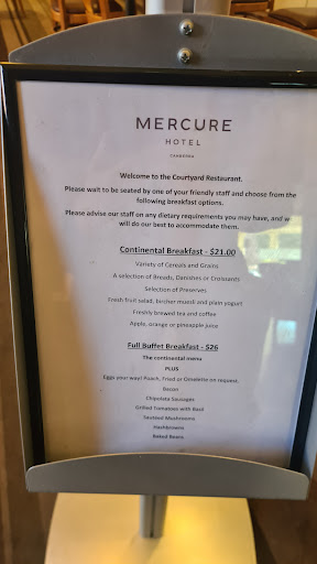 Absolutely delicious and worth it! I slept in and woke up pretty late for breakfat. Most breakfast buffet in Canberra finish at around 10 am, I was lucky that Courtyard breakfast open till 11 am. So it's my first time trying their breakfast buffet and it was unexpectedly very good. The staff is very friendly, fast and efficient. They cleared table and dirty plates, make the dining experience is much more enjoyable. The view on the courtyard inside is absolute beautiful! I enjoy the sight of the water fountain.