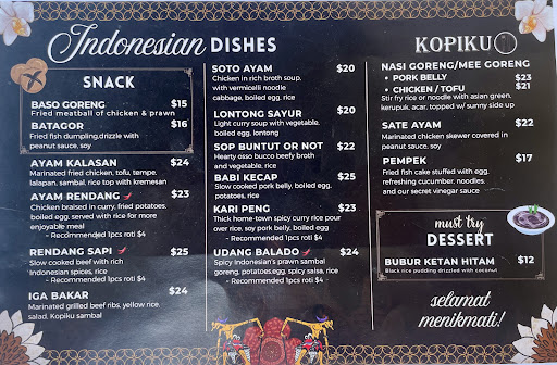 I truly want to support businesses that showcase Indonesian cuisine, but based on this experience, I wouldnāt feel comfortable recommending it. I hope the feedback helps the team refine the dishes and better reflect the rich flavours...
