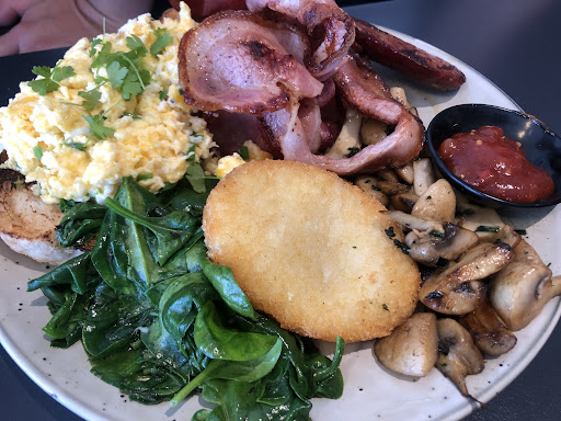 The big breakfast was decent sized. Portions were good and it looked great. Bread was very lightly toasted which can be good or bad depending on your preference.