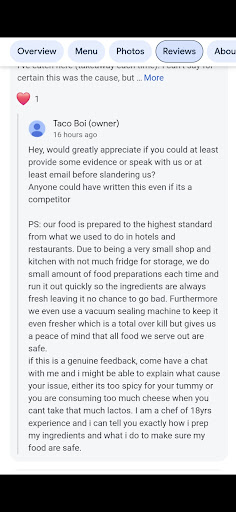Edit: I noticed the ownerâs reply has been updated - I really appreciate the more thoughtful tone (For transparency, Iâve attached a screenshot of the original response). Just to gently clarify, I donât have any issues with spice or lactose, so the original response did feel dismissive. I genuinely enjoyed the food and simply wanted to raise a potential concern based on a consistent experience. I hope this is received in the constructive spirit it was intended, and I wish the owner all the best with...