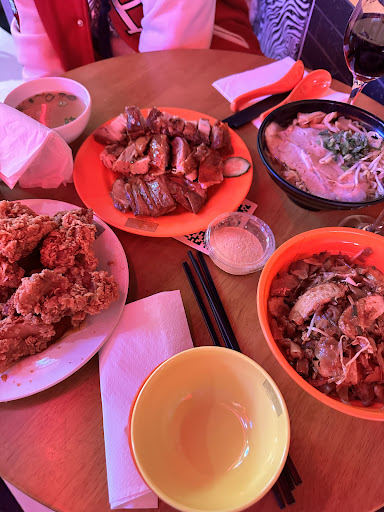 Read moreI leave this review in the hopes it will help this company improve. Being Hong Kong Chinese I was very disappointed in the food. The meat was over cooked the steamed vegetables were just sad, and nothing had enough flavour except the scallion soup. That was the only thing tasty. The service was lacking and I’m assuming the company is quite new so needs to work on improving in service and more experience required for the staff. I wanted to order combination 3 but the crackling pork was sold out so I asked if we could get combination 2 with the duck and char siu and the girl at the register said that’s not possible. So then I asked if we could just get the lucky duck rice and char siu on top again not possible. All I wanted was 2 options of meat and rice. The chef was good enough to finally offer the duck and char siu for the combination 2 price. The girl at reception was clearly inexperienced and would not make anything easy. I also heard a girl come and request for a refund because she had waited for 30 min for her food and when she got it it was cold. The whole district looks really cool but the food in this place seems to be not at a level to match. I hope you find ways to improve it so you get...