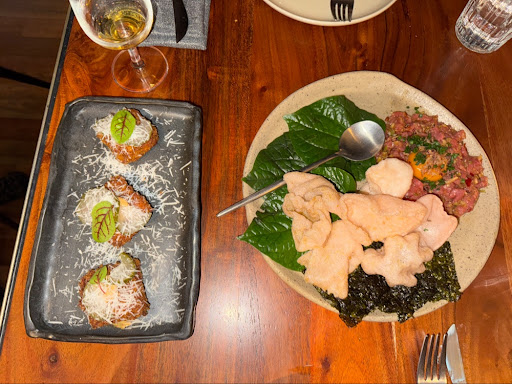 Read moreIf you want an on-trend place, this is for you. We just wanted a meal. Bit naive, I guess. We had no idea that Mince Tartare was raw meat with a raw egg. I asked for fish and that, too, was raw - albeit just about 6-8 pieces of finely sliced raw fish very elegantly presented. I said I could not eat raw fish so they gave me the tuna, which was cooked, once again a very small amount - a piece of fish with a few braised stalks of the green end of about six onion leaks. And we had a watermelon salad - another dainty quantity. My husband had been too polite to complain about his raw meat so endured the ordeal. The bill was $100. If we had watched Mr Bean before hand, we would have known what to do with the food!