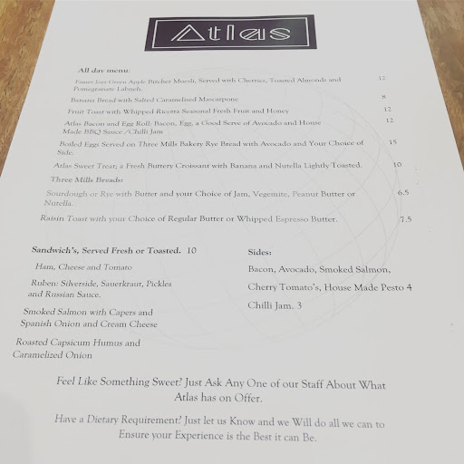 The coffee is the best inside the immediate area and thus far, the best I've had in the greater Canberra region. Atlas maintains a reasonably sized yet versatile menu. Whether you're after a lite snack or something a little more hearty - they've got you covered.