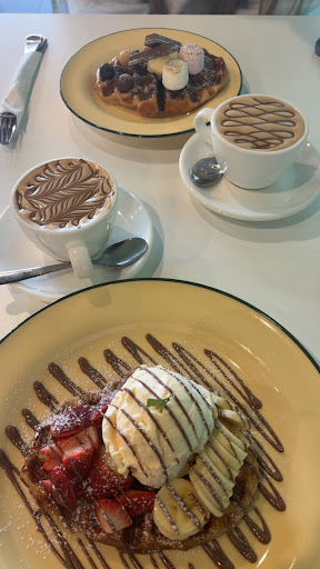 Read moreNice little kids play area Nice tidy cafe Not sure why chocolate sauce on the cappuccino, not really appealing, not sure if ona would approve of this at all, Croffle was cold and from the display at the front, pre made, butter croffle not able to be eaten with the butter cause the croffle was cold and the butter hard, confused why youâre not making croffles to order as the croffle guys do at the markets. Overall we likely wonât be back but it wasnât a...