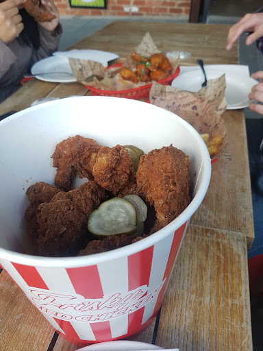 Good atmosphere, venue and seating. The staff are mostly cool and positive to the customers. The cheeseburger was very ordinary, rather dry, pickles were uninteresting and the meat was bland. The fried chicken was not cut at all how it should have been and the coating tasted like plain white bread, (it was overly thick and strange) the chicken itself was okay. Southern fried chicken is a piece of piss to make. I don't know how they stuffed it up so bad. Might have just been a badly made batch? The wings had the tips still on and not cut off, very disappointing. Chicken burger was also a disappointment. Thigh meat on a chicken burger is blasphemous. Unless it is pre-warned for whatever reason. I'm willing to try it again as there are almost no places in Canberra doing ordinary American food. Canberra needs to lift its game on American style food places. Use Easey's in Melbourne as an example. No burger, drink and fries combo should be over $15. This food is cheap in the states for a reason.