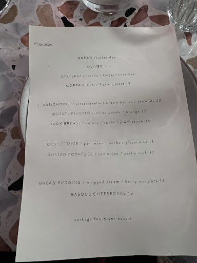 Read moreRecently went here for a Friday evening meal. The service was friendly, but that didn't make for everything else. The Cured Mackarel with Cucumber was a main meal but was less than entree size - about 10 slices of cucumber and the amount of Mackeral was about the volume of a quarter of a mobile phone. This chef is concerned about how good things taste but has forgotten that the purpose of a meal is to also feed his customers. The sides came after our group of 5 had eaten our main course. The cafe encourages people to share meal but when we asked for servicing utensils the staff didn't know what we meant. We were given some bread, after we had finished our main course and sides, apparently as compensation for the small size of the meal, but we were given 4 slices of bread for a table of 5 people - how penny pinching and parsimonious can you get? Finally, this was a cold winter night, but I had to wear my puffer jacket inside because the front door has to be partially open to allow ventilation through the kitchen, so I got a chilly breeze on the side of my...