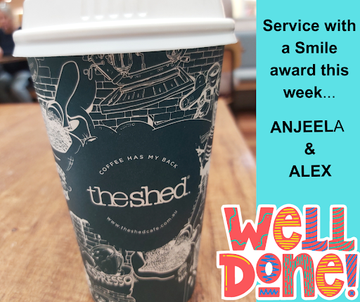 Read moreFriendly staff, great service and competitive pricing. My "Service with a Smile "award this week goes to Anjeela & Alex.. Well done and keep up the good work UPDATE 21/02/2024 - Superior service as usual from both Alex and Anjeela.. For young families, be sure to check out the kids menu, they will love you for it..( see photo ) UPDATE 13/08/2024 - I just love visiting The Shed Cafe at Westfield Woden, and to be greeted by the super friendly staff, especially my two favourites Alex and Anjeela. So my pick for this weeks " Service with a Smile" award goes to them again for the second time. Also, while you are there you might like to check out this weeks special " Tasty Chicken Soup" Yummy ... UPDATE 19/08/2024 - Please welcome the newest staff member Bon le to the Westfield Woden cafe. Bon is so friendly and courteous, and I am sure he is going to be very popular with regular customers like me.Best wishes for the future Bon. UPDATE 5/10/2024..Another great coffee session this morning with once again Bon on top of his game. If you are looking for a great place to spend with your friends and family this long weekend make sure you put The Shed Cafe at the top of your list. Enjoy ... Update..Nothing like a great coffee prepared by Anjeela to start the week off right.Also the good news is that I am heading for a FREE one later this weekend, so well...