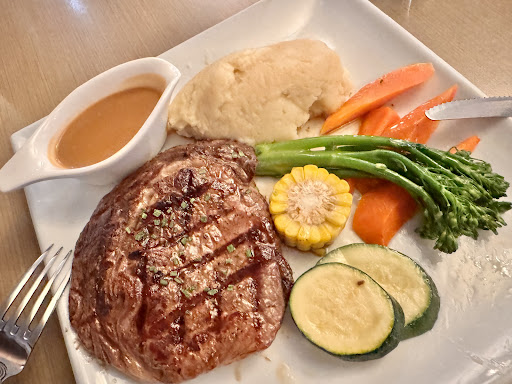 Read moreI cant really say there's an atmosphere because when I usually visit it's on a week night with not too many other people there but I can give the place five stars for its food. I ALWAYS have the steak - and why wouldnt you - its renowned for its steak as the name suggests. Cooked perfectly, tasty as any steak Ive ever had and with nice vegies to go with it. The biggest steak is the one pictured here and I struggled but got through it. The staff deserve a mention. Usually they are French backpackers and they are very attentive and friendlt, always stopping to have a chat about their visit to Australia and their homeland. Oh, and the drinks are not expensive as they have a happy hour that brings a glass of red down to a very reasonable price. When in Dubbo, stay here and visit their...