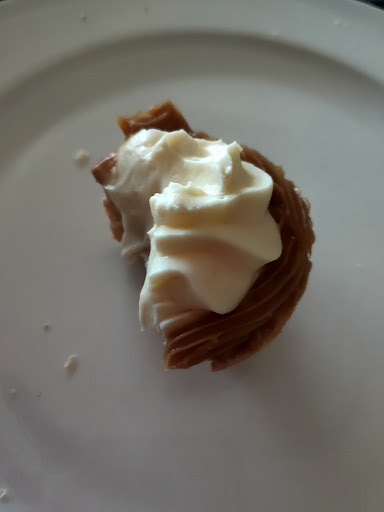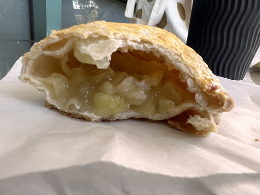 When I order stuff I expect the stuff to be in it. A caramel tart should have caramel in it it's in the name in case you were a little vague on the ingredients as per the picture. There was also the matter of extra cheese in my roll so I should be able to see it and how about when you add sauce you put more on it than the nail on my little finger. When I ask for a apple turnover I also expect fresh cream if I'm cream intolerant then I would put it in the notes the pastry was at least 2 days old and the apple had no taste there's no picture because it looks the same but Tate's like Banther dodo. When making a pork roll try making the pork crisp and don't use soylent green as a filler stuff that looks like cardboard should be left out. All the hot food arrived cold try using a heat bag. What a dismal experience from another low grade cook it and run take the money...