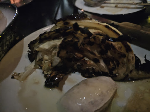 Then we finally receive two of our 3 orders main course meals. We finish our stuffed chicken and our potatoes and was still waiting for our pork belly . We assumed it wasn't coming. The waitress cover. She starts with "how was everything?" I replied with "some of it was fine" so then she looks confused at me for a moment til I tell her we are missing our pork belly and at this point after two entrees a main and potatoes spread over 2 hours...understandably we are now not hungry. To be told it's "staggerd food" at the end to cover up a mistake/forgotten meal is the icing on the cake. I tried to see if we could not continue to go ahead with this lonesome 2nd dish but no I had to get it take away.