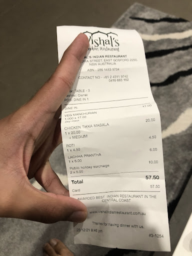 I have never slammed a restaurant for their food before, I always try to comment on the issues and praise the good, but I have nothing good to say about vishals and I'm fuming that I just spent $59.60 on the second worst Indian food I have ever had... After being recommended to them by my sister, and reading the reviews, I have serious concerns for the standards of the people on the central coast after trying their food... And these guys have their food award plastered on the shop window... To the review of the food... The meat samosas pastry was the most greasy thing I have handled in my life. My whole hand glistened after I disappointedly put it down my starving gullet. The filling was under seasoned and dry and left me with a feeling of trepidation for what was to come next. The mint sauce they gave us is from a big supplier that uses green foods dye to accentuate the "minty-ness". I remember telling my wife to get the butter chicken, because I think that is a pretty good indication of the overall quality of the restaurant, but, my suspicions were correct. The chicken was not cooked in the tandoor (I dare them to challenge me on this) and the sauce was from a bulk bought, factory made, tub (challenge me in this too, I dare you) and would have left me feeling underwhelmed, if I hadn't just paid $21 for the smallest rectangular take away dish available (check the picture). I even said to my wife "for those prices, it had better be the best Indian we've ever had, if it's the medium sized tub, but if it's the small tub, I'll be super pi$$ed". And guess what?! They are the tiniest containers available, and as mentioned earlier, was the second worst Indian I've ever had. The worst was when we moved to the central coast 16 years ago, and got Indian from the local wyoming joint, and it was pan fried meat in patak's sauce ( I wish I was kidding). We also ordered the Bombay beef (medium) with coconut sauce. The meat has clearly been simmered as it was somewhat tender (some chewy pieces), but their idea of medium was a joke, didn't even bring a sweat to my brow. They gave us 4 papadums, that disappointingly, were the highlight of our dinner! (there you go, I lied. There was something good to praise...) We like to cook, and I guess that makes us fussy when we eat something that we could cook better ourselves, but that's not even an issue here. I move around a bit and try a few Indian restaurants in the suburbs I visit, and for anyone interested, Turramurra on the north shore, and Cooks Hill and Hamilton in Newcastle have Indian that would leave you speechless, if you thought this place was worthy of an award. And to Rohan, my Sri Lankan neighbour that taught me how to cook a mean curry, you and Chathu should go into business... you'd make a fortune! ... rant over... N.b. Central Coast, we...