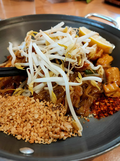 Read moreI came here with a vegan friend and was pleasantly surprised. The menu is a really comprehensive Thai menu. Pretty much everything you would expect from a regular Thai restaurant - curries, salads, stir-fry even larb! (like minced meat salad type dish). There is mock meat substituted in everything! So on the menu there's chicken green curry, or pork stir-fry and it's made with mock meat. From what I tried - sizzling sweet and sour pork, mushroom stir fry salad, and a dimsum (looked like a sui Mai) from the kids menu, most of the "meat" had a similar texture to fishcakes/fish balls! Taste wise, I really didn't try enough varieties to compare them, but the sauces they served were strong enough to mask the flavour of the mock meat. I ordered vegetable pad Thai - with tofu, no mock meat. It was ok, I expected for there to be more vegetables in the dish, it was just a bit of grated carrot and the tofu. Overall it was a quite pleasant experience. The kids meal looked great and came with a big serve of veg noodles and some little sides too. I would recommend this place to vegetarians/vegans and for them to take their friends. I was sceptical of all the fake meat, but I liked that the dishes are mostly pretty traditionally ones you would find on...