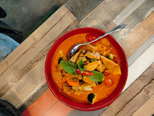 I decided to try their Thai green curry and green curry, both entirely vegan, featuring soy protein instead of meat. The transformation was seamless. The soy protein, skillfully prepared, offered a texture and flavor so compelling that I didn’t miss the real chicken for a single second. The richness of the coconut milk, the fresh aroma of Thai basil, and the perfect blend of spices made it probably the best curry I have ever had. Each spoonful was a testament to the culinary artistry that goes into crafting vegan dishes that are both delicious and satisfying.