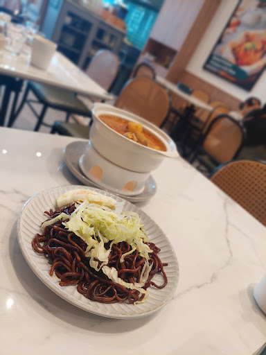 Read more3.5 stars Venue: street parking/ carparks at rear. Causal setting with retro Malaysialn style decor. A bit packed during rush hours. Outdoor dining is available. Two unisex toilets were clean. --- 7.2/10 Service: depend on which waitress on duty. We came twice (lunch and dinner time). To be seated very soon. Jot down your order on the order slip, and the waitress will collect the order slip (pay before leave). But you are not always given an order slip and menu. Or order & pay via QR scan. Get chilled tap water, serveitte, and extra utensils at the self-service counter. Basic courtesy. Reasonable waiting time for food. A Chinese girl provided very good service 5pm on 22/2/2025 (8/10 to her).--- 7/10 (overall) F&B: Bilingual menu with attractive photos with descriptions of ingredients (some dishes English name are Chinese pronunciation) Malaysian style cuisine. Halal food. Normal presentation of food. Normal portion. Prices are slightly on the high side. Iced Sea Coconut, $6.9: ok. --- 6.3/10 -Duo Hua (Soybean Pudding) with Soya Milk, $6.9: expected more Duo Hua for such price. Dou Hua was smooth and slightly sweet. Larger portion of plain soy milk. --- 6.9/10 Baked Herbal Chicken with Rice, $19.9: whole chicken leg was not wrapped by parchment paper. Slightly dry. Sauce was good. Good portion of steaed rice. --- 7.4/10 Curry Fish Fillet with Rice, $19.9: fish curry was served in hotpot style. There were eggplant, bean, 3 tomato wedges, 3 fried fucuk, and 2 tofu puffs. Good portion of thin fish fillets. Not sure if it's perch as too thin slices. The texture of thin fish pices was just mediocre. Curry sauce was good and not spicy. --- 7/10 Teh Tarik, $6.5: not bad Lunch (first visit): Wat Tan Hor Beef, $19.9: Wok Fried Flat Rice Noodles with Sliced beef and vegetables in egg gravy. A lot of egg gravy was like a thick soup. Beef slices were slightly chewy. Flat Rice Noodles were sticky together. --- 6.6/10 Curry Laksa. $18.9: There were 2 prawns, BBQ chicken skin on. tofu puffs, bean sprouts (tangeh), 3 fried fucuk (bean curd sheets). Can choose mee or bee hoon (rice Vermicelli). Large portion of mild spicy Laksa soup. --- 6.5/10 Luo Han Guo with Cincau & Longan, $8.9: portion was ok. Can taste Luo Han Guo. --- 7.3/10 Iced Hainanese Milk...
