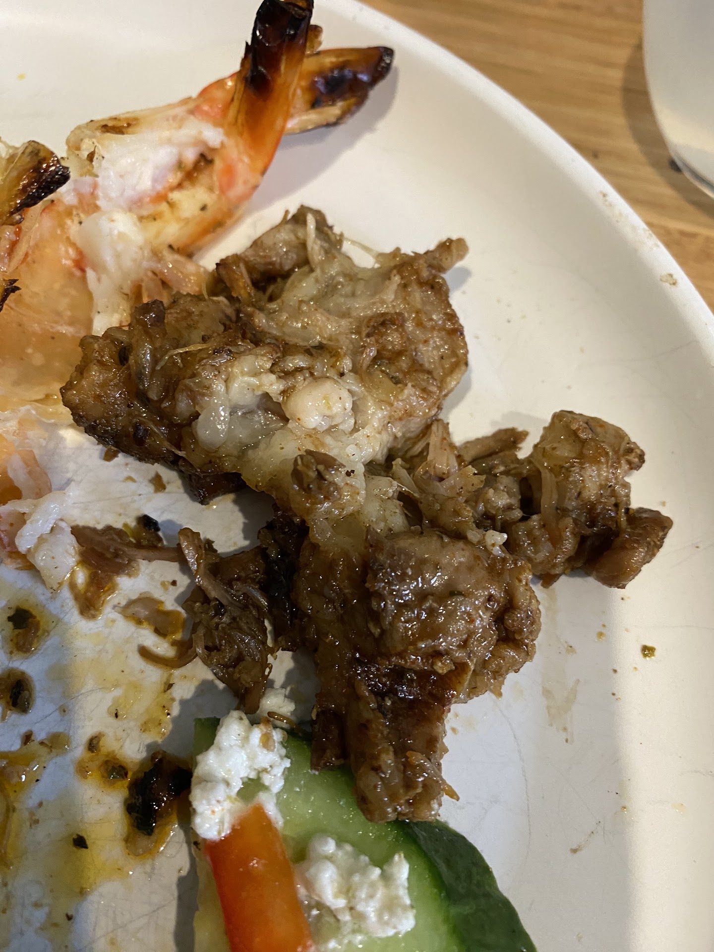 The food was incredibly salty, in fact we couldn’t eat the calamari it was so salty, some of the lamb was tender / nice but there was an enormous slab of fat in there as well.
