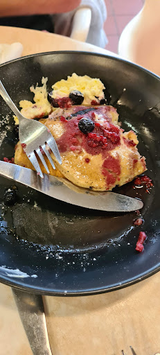 French toast soaked in berries and tasted like eggs it was disgusting. Wife took it back and they made her an eggs Benedict which was ok.