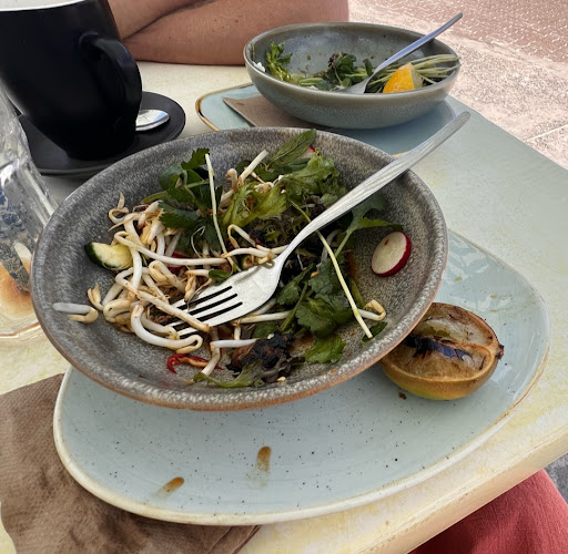 Read moreWe went there on a Sat and it was packed but we put our names down for a table for 2.5 and did not have to wait too long which was great. The table was directly in the sun which we did not appreciate having a 15m old with us but upon request the staff opened an umbrella. The view is great and it explains why the cafe is so popular but we were disappointed with the food and the interruptions. Once we were served the food (came fairly quickly given it was uber-crowded) the staff moved our umbrella away from us to accommodate some larger party and we ended up moving our own table (with the food that had just come) and chairs to make more room. Working in hospitality myself I understand that you do your best to accommodate each guest and avoid waiting time but in the end that detracts from someone else’s experience and family time if they get interrupted and end up moving furniture around. We did not mind giving a hand but we felt like our whole experience was affected. The food was borderline edible. I had a wrap which I thought it was okay but my wife was disappointed in the chicken burger which was over-cooked, dry and bland. The mango smoothie she ordered did not taste like mango, it was nice and creamy but had no definite flavour. The coffee was bitter which is odd since I ordered a cappuccino so for a milky coffee to taste bitter the shot would have had to be pretty bad. Anyways maybe we just got there on a busy day and it’s a one off but overall unimpressed so would rather get takeaway and enjoy it on the beach next time for...