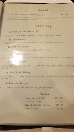 ย ย ย Read moreWe were travelling to forester for a long weekend, this busy Thai restaurant is definitely a good surprise. It was very busy on Sunday evening, we were lucky to get a table without waiting. Ordered salt pepper squid with sweet chill, crunchy and fresh . The pad cha fish (deep friend barramundi fillet with basil and turmeric sauce), it was flavoursome and went well with the rice! Highly recommended. The signature dish, beef massaman curry, we have noticed almost every table have ordered it, it took about 30 minutes for it to be served, the flavour is good however beef was a bit dry and the tomato on the side was just plain fresh tomato. Probably 4/5 for this one. Overall experience was great however I think the restaurant was a bit under staff, they have lots of take away order and it was full house for dining in, but only saw three waitresses on the floor . Would come back next...