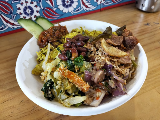 Read moreIf only I'd checked the reviews BEFORE ordering! The below review was exactly right - I ordered the mie goreng and vegetable spring rolls tonight @ $28.00. I was gobsmacked looking at the plate, it looked and tasted like the mie goreng you make with the 2min noodles from the packet. Tiny skewer of burnt "satay" chicken with barely a teaspoon of sauce. Incredibly greasy oil slick on the paper doiley which soaked up into the wooden fork you get to eat it with. The vegetable spring rolls were hardly fried, so blonde and cold inside. They were full of vermicelli noodles, no veggies and no flavour. Once again, barely a teaspoon of peanut sauce to go alongside the spring rolls. The cleaner asked if I was okay as she took my full plates of food away. Customer service was appalling. Really disappointed, pretty upset at wasting so much money...