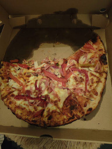 Won't be going back 😠 ordered 2 large pizzas today, get home to find neither had any sauce, and neither were cut into slices!!! Maybe if the lady working wasn't making phone calls and talking on her mobile phone the whole time (while the shop phone kept ringing!!), she may have noticed the pizza belt wasn't moving and that pizza was burning, maybe without a phone to her ear, she may not have dropped a pizza and just scooped the toppings back onto it!!!! And did i mention that she wore no gloves with jewelry on hands and wrists, making pizzas and handling money 😔 Wish I had checked the pizza before leaving and driving the 20...