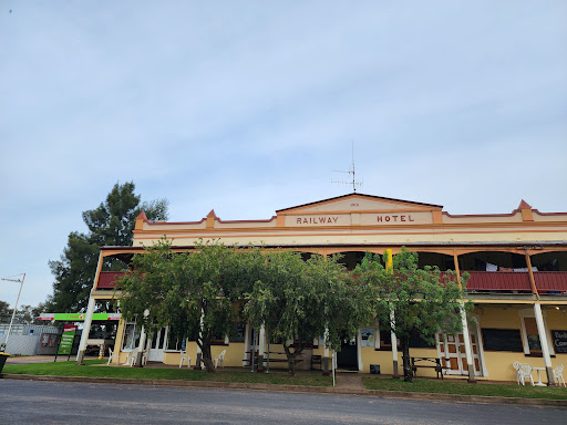 Read moreOld style pub with quaint decor to match and pleasant outdoor seating overlooking the park, silos and rail line (no trains sadly). The friendly and efficient bartender was kept very busy having to run between the drive thru bottle-o and bar. Big choice on the menu of normal pub fare plus a pizza menu. Chicken parmy was quite tasty.