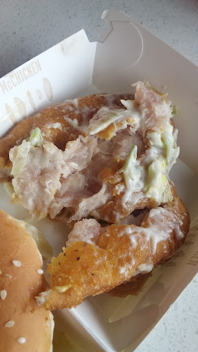 Was not impressed!!! Usually great fast service delivered to table but just not this time! 2x Nugget H/Meals,1x C/Burger H/M,Filet fishMeal,Dbl Qtr Pounder Meal and sauces.Had to go to counter as we were missing things then was asked if I could bring my tray back so they could see what they missed after I clearly stated it was a F/Fish,mayo packets and sauces for nuggets and 1 H/M wrong.I said no as I had already laid food out. The woman then rolled her eyes,slapped my receipt on counter and called out to young girl who had just walked thru door "Can you go with this lady.She says she's missing a burger." The girl then advised me to go take a seat etc but was then told, loud enough for it to feel awkward, that she was to go WITH me to my table and have a look if i was missing a burger etc.When all that was sorted finally,my family had already finished eating and waiting on me. I opened burger (and only the burger as I ate my chips while waiting) I found that my filet was hard.Went to counter again,was ignored by woman and finally approached by girl. Asked her if I could have a fresh burger and meal replacement as I really wanted it all together. She spoke to woman and was told to tell me that it was my burger (which she thought was fine) that would be replaced. I understand that busy periods are stressful but it would have gone smoothly had my meal been sorted straight away when pointed out. And I probably would have eaten the F/Fish as I would have been eating with the rest of my family. When I received burger it was time to go so I had it...