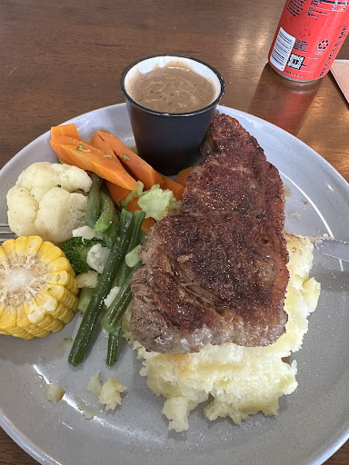 My son and I turned up late (closer to 8pm on a quiet Sunday night) and ordered two meals - a steak meal and a chicken burger. Service was excellent - nothing was a problem and the meal was served quickly. The steak was surprisingly good. I had just done a BBQ course on how to cook meat a few weeks earlier and one of the things I learnt at that was that steak is often under-seasoned. But The Stones nailed it. The seasoning was excellent, and the medium steak was - medium! Chips were perfect, and could not fault them. I didn't have high expectations when I walked in given this was a club and not a fine dining restaurant, but my experience was much better than I thought and I would certainly recommend The Stones as a place to visit and eat. This place has better than normal RSL/Pub style food and I think most people would be pleasantly surprised with the food. We were passing through town but would not hesitate to return if/when we are...
