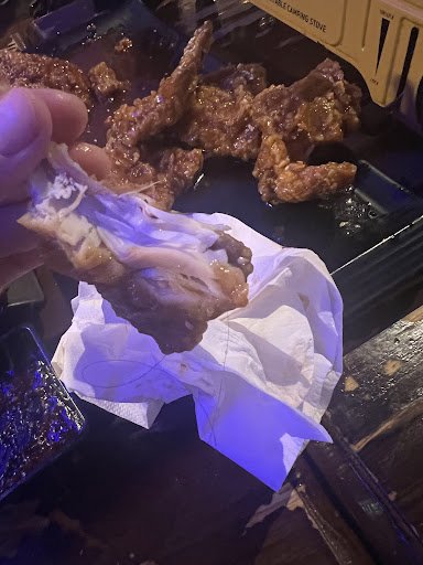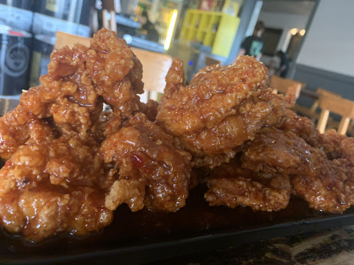 All the food was delicious. I’d especially recommend the sweet and spicy fried chicken, it’s not too spicy but has a mild kick tempered by the sticky sweetness of the sauce. Also the corn cheese side was really good too, as was the beef bulgogi and kimchi. The spicy pork belly was too hot for me, but our friends enjoyed it, who admitted it was very spicy even for them.