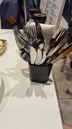 The actual tables themselves are small, yet they have overcrowded cutlery/items on them - my table with 2x seats currently has 9 (9!!!!) knives in the cutlery holder. It makes no sense and makes the whole experience crowded and uncomfortable. Also my table rocked, and so did the table sitting next to me. Just felt so cramped.
