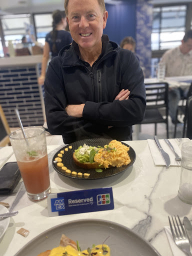However we love having breakfast together as a couple so we go to many places, (the staff look very stressed out with ordering) we ordered smashed avo & salmon which came with one piece of sourdough with half of the slice covered with a small spread of avo and the other half covered up with Spinach and a small piece of salmon.