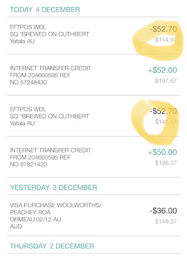 We arrived at the restaurant and they were having issues with they eftpos machine. We paid for our food but their systems was not showing the transactions that had been processed. We showed the manager the amount that was deducted from our account on our bank statement. The manager insisted that we needed to pay again for the food to be released to our table. So we tried paying for the second time and the money came out of our account and l showed the manager our bank statement again but still the transaction was not reflecting on their eftpos machine.