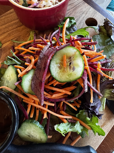 Read moreLunch on a Sunday, a walk on the beach and a lunch at the Broadbeach Tavern. Four of us in total. Nice general feel, open layout and although there was a slight smell of cleaning product that is way better than pub smell of cigarettes, spilled grog and despair. The layout is good with plenty of room and it was light and airy. We ordered ; a corn and zucchini fritter burger with large fries; very nice. Was not sure it would work but the sauce brought it all together and I was impressed. Chips were hot and fresh. The pumpkin salad; the salad bit was okay although the tinned beetroot was tasteless and the pumpkin was boiled and flavourless. Probably the worst salad ever eaten. Thai beef salad; Overall it was quite nice but the steak was over cooked, dry and tough The Caesar salad; went down a treat. Nice touch with the oozing boiled egg left on top to cut into as you started. Nice. And too much salt used in preparation. We were all gagging for water after eating. Helped with the beautiful beer. So nice to have a decent pint on the menu. Personally, I think pub menus should be approached with the attitude of what can be mucked up the least. Steak is always going to be an issue as it needs to be cooked perfectly and lets face it it is expensive. So if the meal is not expensive then the steak will be rubbish. Table staff were efficient but not effusive. A great spot and so close...