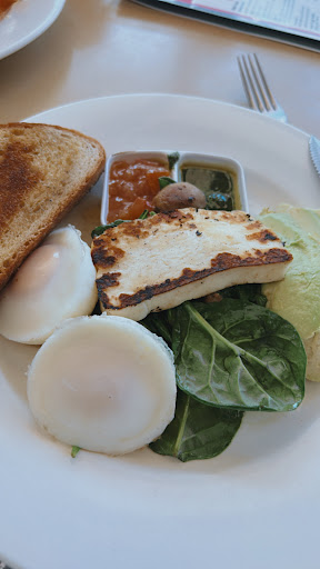 Tried the iced coffee with vanilla and didnât like it much to be honest. It was a bit too sweet and coffee was not strong enough. The iced coffee was in a real tall glass so that probably played a part in the the ratio of sweetness vs coffee taste. Husband tried the Eggs Benny and I tried the Halloumi delight. I was pleasantly surprised how nice it was and enjoyed my brunch. We also ordered the banana bread and it was nicely toasted.
