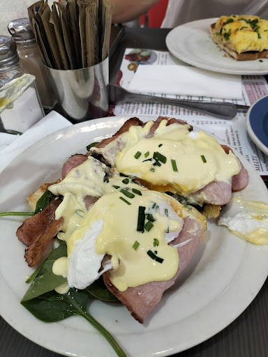 I am an eggs Benedict hunter, I eat egg Benedictâs pretty much at every cafe I go to, my breakfast favourite, not so much here. The Turkish bread was extremely soggy from an overload of wilted spinach and with oils from the salmon, I highly recommend a lot LESS spinach and not wilting it or making sure it is drained properly, it will be cost effective, much more flavourful and the bread wonât get so soggy. The poached eggs were over done, unfortunately no yolk was oozing out, both for my Benedict and my wifeâs budget breakfast. The hollandaise was DELICIOUS, itâs unfortunate it is drizzled on the eggs and not dolloped, half of the flavours of eggs Benny is the hollandaise. The budget breakfast was average, nothing to brag about, the bacon can use more time on the grill to get a nice crunch from it. We Gave you 3 stars because the service was great, the coffee was good and ambiance of the outside seating was nice. Thanks for...
