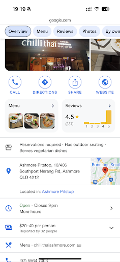 Read moreI had never eaten Thai before; loved it and so did my 2 friends. My friend was visiting the coast & loves Thai. Chilli Thai was conveniently located so I booked a spot as their reviews were good & due to Covid19 I didn't want to miss out on a table. My Thai loving friend was most pleased with her special request meal (as her approved diet is a challenge needing to be gluten free amongst other things) and said it was best done vegetables she had had from Thai in a long time. Needless to say when she returns in a few weeks we will go back & explore more dishes on the menu. Thank you Joy for your attentive service & very reasonable prices & I loved the fact that I could have a bourban & coke to wash down my meal. Highly recommended They do...
