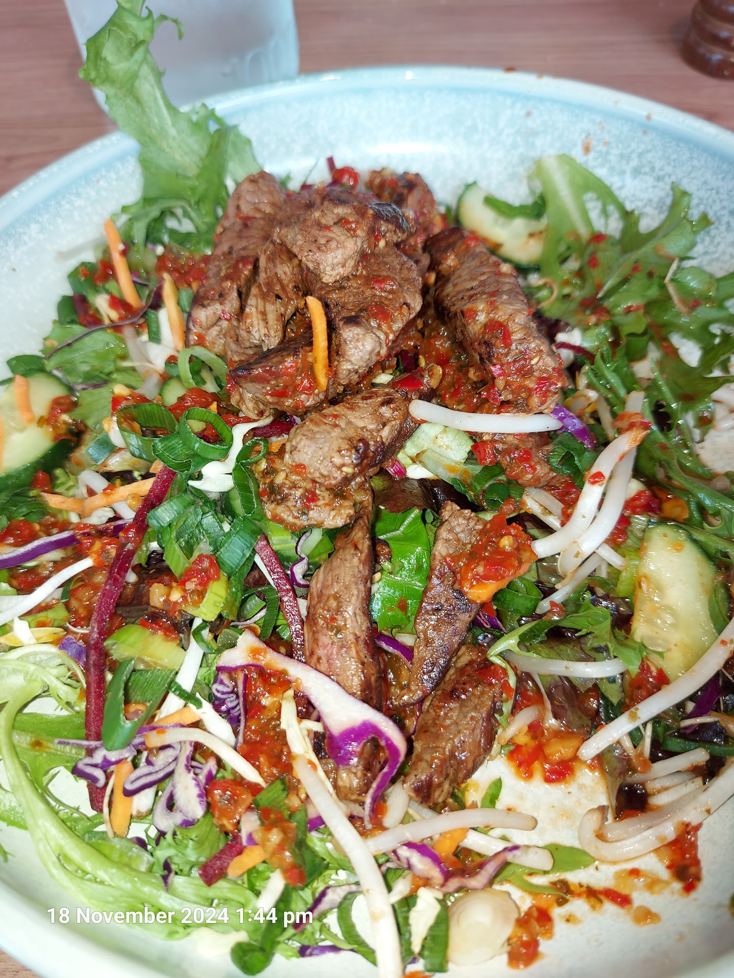 On the positive side, the food was good. My Thai beef salad had a generous portion of beef and the dressing was decent enough.
