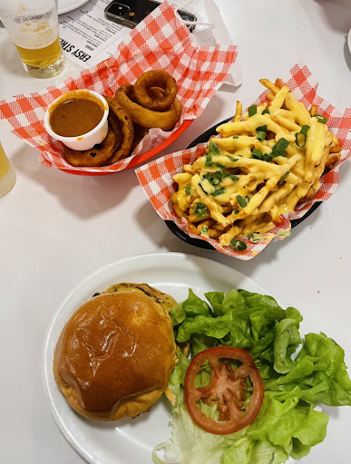 My mate and I shared cheesey chips, pork pieces, and onion rings. By chance (won't divulge) my mate had the pork belly burger and said it was delicious. I had the double royale and smashed it in about a minute I was so hungry and it was so good.