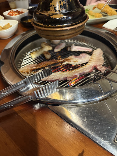 Absolutely incredible. I went with two other friends and got Pork Belly. Has a very wide and tasty selection of meats, they give you more side dishes than you could ever believe, and unlimited free water refills. The exhausts are great, the stoves are great, the table are great and even have little cut-offs and translucent window things around the table for extra privacy, everything is so cute, incredible, and clean, I had THE BEST TIME. Everything is SUPER affordable too! My friends and I had two pork belly strips, 3 bowls of rice and a bibimbap (the bibimbap was enormous!! so worth its price and I HIGHLY recommend it) and amongst the three of us it cost around $26 each - two of us are particularly big eaters and we were full by the end of it all. We struggled cutting the pork belly with the scissors they gave us because it was so damn thick haha but the chef actually saw us struggling and came out and cut it for us - mega embarrassing but super sweet too. It also has a good selection of beer and soju for also really affordable prices (around $15-16 for a bottle of soju if I remember correctly). I would recommend booking rather than showing up as we showed up and had to wait about 15 minutes for a table to be free, but understandable since this place is SO GOOD!!! I would 1000% come here again to eat dinner for any celebratory or...