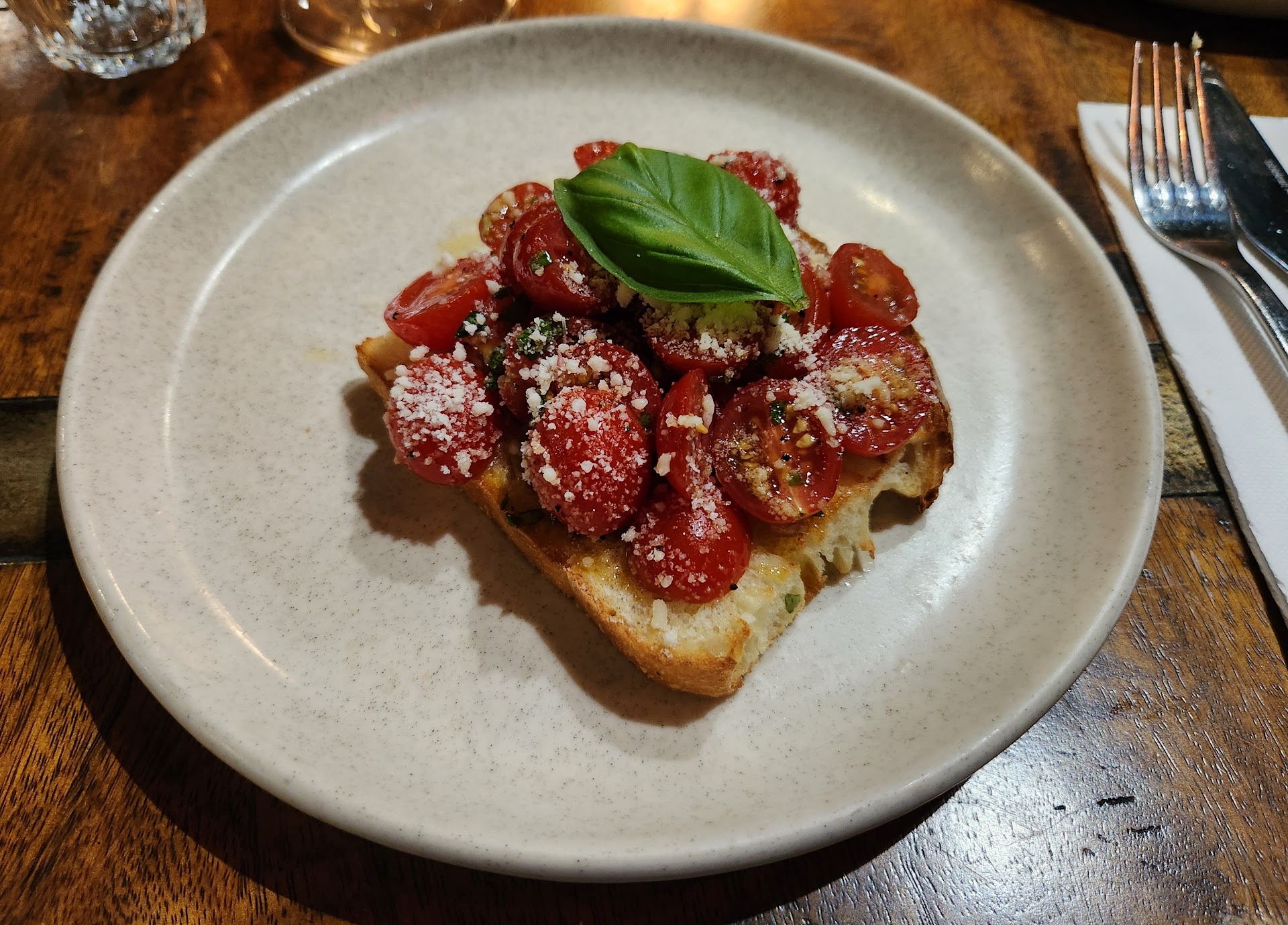 The Meal In a few words, Satisfying authentic Italian food that artfully balances flavour and texture from start to finish. Entree - Bruschetta - The bruscetta was delicious, with crunchy but tender bread topped with cherry tomatos full of flavour. The surprisingly powerful addition is the parmesan cheese ontop. What a combo!