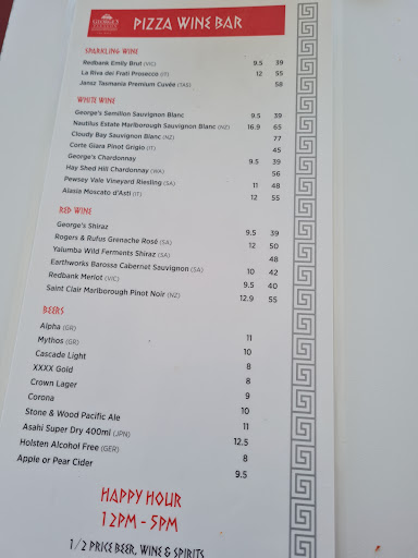 Read moreAmazing pizza , wine and beer on the water for amazing prices and fresh amazing pizzas. Where else can you sit on the water looking at million dollar luxury boats and pay $5.50 for a Corona and $20 for a giant fresh cooked pizza or $30 for a good bottle of wine. We go every week and have done for years and have never had a bad meal or a warm drink. This became our local when the brewed brewery closed down at paradise point as there are only a few places you can dine on the water at Paradise Point and sadly the restaurant that replaced the brewed brewery is too over priced and food lacking , it’s better to spend $12 on a under and go to George’s and now the 4 -6 of us go weekly and stay for pizzas and salad and drinks for 3-4 hours on the water and the most we spend is $35 each. There is no table service but the restaurant has its own bathrooms and the view is excellent with every table having a water view and the hundreds at giant fish in the water makes it a very appealing day out . This place has nailed it and is always packed busy but the service is never slow no matter how busy they...