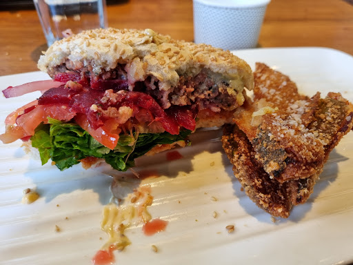 Read moreTaste 4/5 I ordered an Impossible Burger & Zucchini chips. The burger was great; the bun was fluffy and light, the salad was fresh and flavoursome. It was the first time I tried an impossible patty and I was delighted. Moist and packed with meaty goodness. That being said, that's expected and the sauce was the highlight of the burger which isn't a great thing. The Zucchini chips were the stand out of the meal. Super super crispy and loaded with salt. (Burger 3/5, Zucchini chips 5/5)
