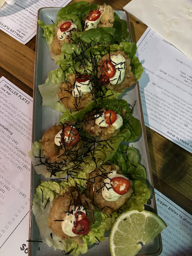 We then ordered the food and the only reason this review is a three is because the food did partially make up for it. We ordered the edamame, lotus root chips, popcorn cauliflower, salt and pepper chilli squid, chicken satay sticks, chicken karaage bao buns and the pad see ew. All was great for the price point but as someone from over the border, I wouldn’t travel up here again to eat the food was good but not amazingly great.