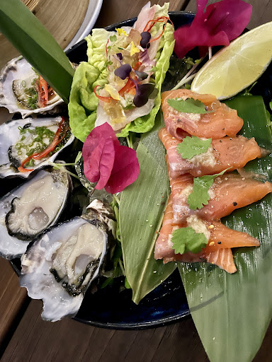 Raw Platter with Oysters, Kingfish, and Salmon: The seafood was incredibly fresh, a true testament to the kitchen’s commitment to quality. I had the choice of oysters and opted for two ponzu and two natural, each offering a unique taste experience. The ponzu oysters were tangy and refreshing, while the natural oysters allowed the pure, briny flavour to shine. Each bite was a burst of oceanic flavour, beautifully presented with edible flowers that added a delicate touch.