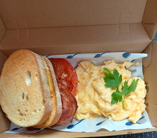 Ā Ā Ā Read moreIt was seriously hard to go past the chilli scramble on the menu (sounds so good - next time!), but I was in the mood for a classic bacon/eggs/tomato combo and mannnnnn, did they do it perfectly! Even after travelling 10 mins as a takeaway, the scrambled eggs are on point (and I'm insanely picky about my scramble!) - the photo says it all really, silky and sublime, and seasoned beautifully, so tasty. I always ask for crispy bacon and I asked for the toast to be on the side, so it doesn't get soggy, and they delivered everything exactly as requested. Service was fast and friendly, coffee is well made, too (Toby's Estate beans which are always decent). Oh, and prices are super decent! So happy to have this little gem near work and very happy to...