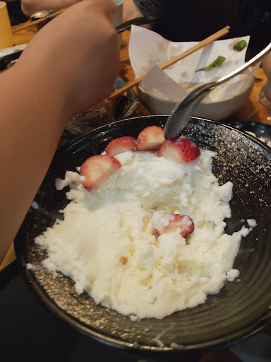 For dessert I had the green tea and coffee icy snow flake. Tasty but a very watery and frozen dessert. Strong macha taste as one would expect, the coffee isn't really present. Very airy and the coconut gives it the volume and dryness after three opening. I suggest at least two people, this is one big dessert, even for me who eats desserts very well it almost had me defeated. The sweet beans are well matched but mine were a bit too mushy to my taste. One thing I really appreciated was the development of the dessert. Because it is such a big dessert, and this takes its time to go through its very well thought to have the melting icecream soak the bottom of the dessert which is a chunk of coconut which makes the coconut so pleasurable.