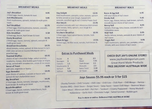 Read moreTucked away in a small street shopping strip, you will find Jay's Food Emporium. This little cafe does the best value $5 breakfasts. Their bacon eggs and toast is a big hit - I strongly recommend a visit to this tiny local cafe. Famous for its range of sauces, they also do great burgers and milk shakes too. Best of all there's another Jay's just around the corner in the main Street of...