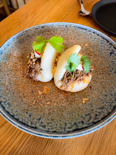 Baos. Personally I think open Baos are overrated but these we very well made with the marinated pork rib filling and the sauces to balance the taste. Very modern and very well done.