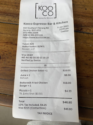 Kooco is located in a weird section of Nerang (away from all the shops) in a small business centre by the M1. But don’t let that deter you. My wife and I had lunch here for the first time and really enjoyed it! Coffee was good (double piccolo) and my Buttermilk Fried Chicken Burger was super yummy! Perhaps one of the best chicken burgers and fries I’ve had in Oz. The chicken was moist, flavourful, and perfectly crispy and the fries, so so good! Great job!